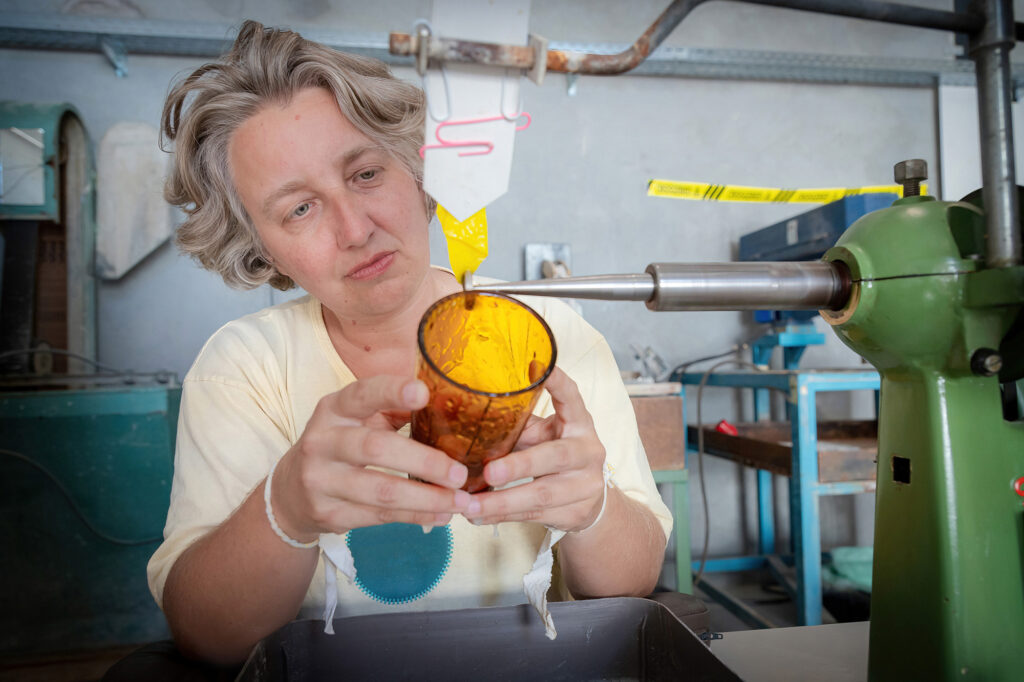 Kort samen bekijk samen met de kunstenaar wat je hebt gemaakt, en wordt het glasplaatje ingepakt om veilig te worden meegenomen.
